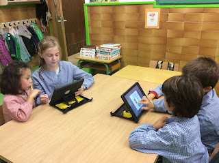 Aquest any utilitzarem un nou recurs per treballar alguns continguts de matemàtiques: els iPads. Els nostres padrins, en saben molt i ens han ensenyat a fer servir algunes aplicacions perquè ho poguem fer sols. Ens ha agradat molt compartir aquesta estona amb ells. Ens ho han explicat molt bé, i ens han ajudat molt quan ho hem necessitat. Moltes gràcies als nostres padrins!!